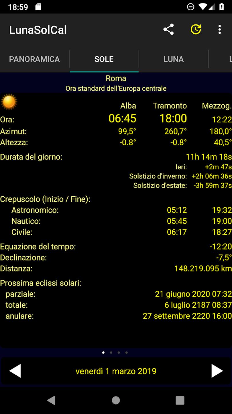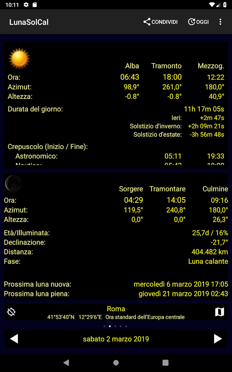 Sempre per gli amanti delle Effemeridi riportiamo oltre al già riportato sito del Menichelli, due applicazioni per lo smartphone estremamente interessanti, dove potrete vedere le effemeridi dei pianeti compresa la terra, le lunazioni, i Solstizi e gli Equinozi, le Eclissi di Solari e Lunari e moltissimi altri dati. Di seguito le applicazioni: