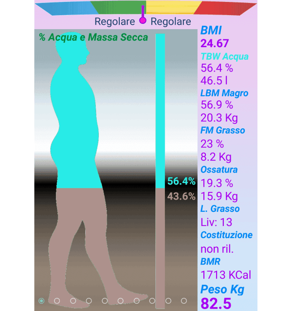 BLA è un sistema avanzato e affidabile per l’analisi, la misurazione e la gestione completa di 13 parametri fondamentali del corpo umano. Grazie a una tecnologia di precisione e a un software dedicato, è possibile monitorare in modo chiaro e puntuale lo stato fisico della persona, sia in un singolo momento che lungo un periodo di tempo.